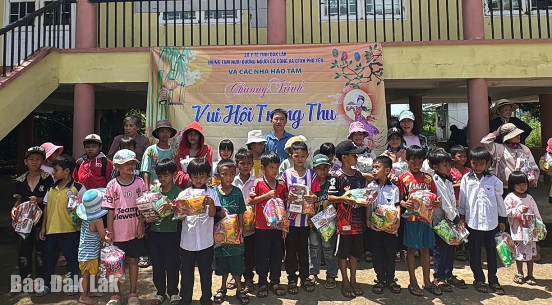 * Trung tâm Nuôi dưỡng người có công và Công tác xã hội Phú Yên (Sở Y tế Đắk Lắk) vừa tổ chức thực hiện chương trình “Vui Tết Trung thu” tại các xã Đồng Xuân, Vân Hòa, Hòa Mỹ, Ô Loan, Phú Mỡ, Tuy An Tây và Bệnh viện Sản - Nhi tỉnh. Tại các địa phương, trung tâm tổ chức các hoạt động giao lưu văn nghệ, hoạt động vui chơi cho trẻ, tổ chức múa lân, phá cỗ trung thu. Đặc biệt, trung tâm kết nối các nhà hảo tâm tặng gần 1.000 suất quà đến các trẻ em có hoàn cảnh khó khăn, tạo điều kiện cho trẻ em có hoàn cảnh khó khăn được vui Tết Trung thu, an toàn, ý nghĩa.