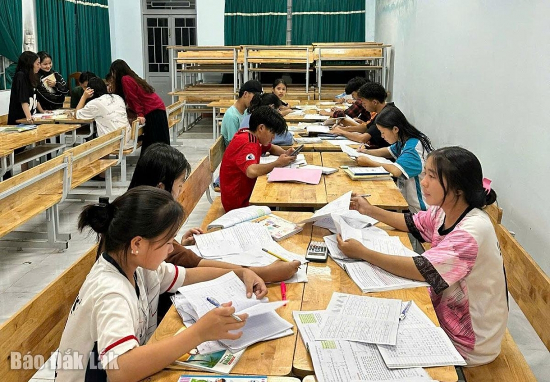 | Trường THPT Trần Hưng Đạo (xã Yang Mao) tổ chức ôn tập miễn phí cho các em bán trú. |