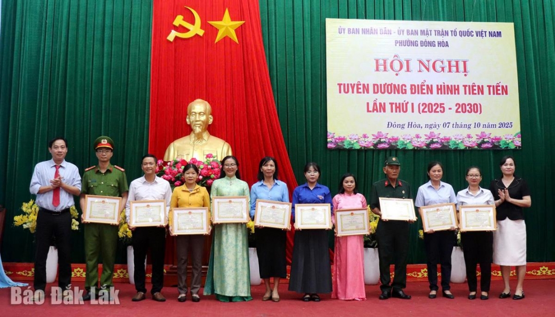 Dịp này, UBND phường Đông Hòa khen thưởng 4 tập thể và 10 cá nhân điển hình tiên tiến, xuất sắc trong phong trào thi đua yêu nước giai đoạn 2020 - 2025.