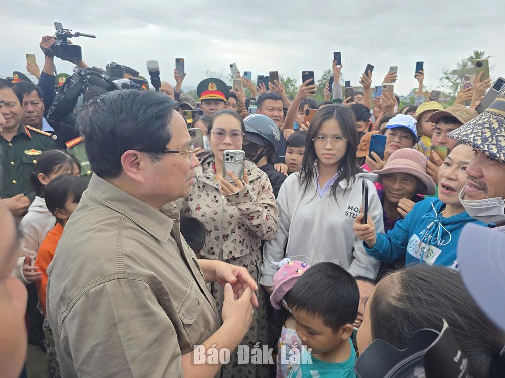 Tại nơi đến thăm, Thủ tướng nghe báo cáo về phương án xây dựng nhà tránh lũ cho người dân vùng ngập sâu, bảo đảm an toàn và lâu dài. Thủ tướng nhấn mạnh yêu cầu các cấp ủy, chính quyền dồn toàn lực chăm lo cho dân, khẩn trương khắc phục hậu quả mưa lũ và sớm ổn định đời sống.