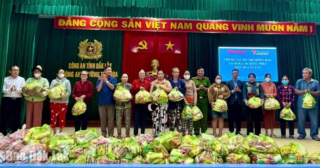 Chiều 3/12, Công an phường Tuy Hòa phối hợp với đoàn công tác của Báo Tiền Phong và Tập đoàn Vietravel tổ chức trao quà hỗ trợ người dân bị ảnh hưởng trong đợt mưa lũ vừa qua tại phường Tuy Hòa.