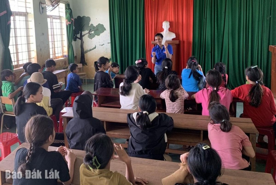 | H Lỡk Byă tham gia sinh hoạt hè với trẻ em tại buôn Yă Wăm B. |