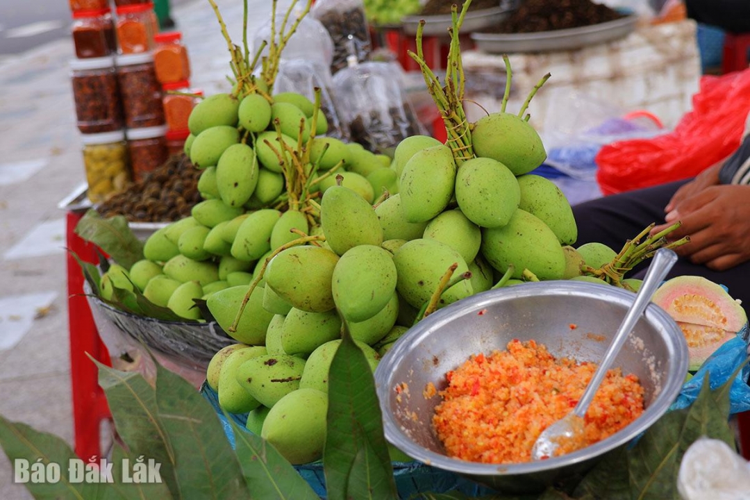 Sản vật được bày bán tại đây không chỉ phong phú, đa dạng mà còn mang một giá trị đặc biệt - đó chủ yếu là hàng “cây nhà lá vườn” hoặc được chính các bà, các mẹ cẩn thận thu gom từ trong buôn làng sau mỗi chuyến lên nương rẫy, sau những mùa thu hoạch. Đó là những chùm dâu da chi chít quả; rổ chôm chôm rừng với phần thịt vàng ươm, hương thơm đậm đà, khác biệt so với chôm chôm trồng đại trà; những chùm me xanh non bán kèm với muối ớt cay nồng; hay những hũ chùm ruột rim ngọt dịu; món xoài non chấm mắm ruốc, kích thích vị giác của bao người. Nhiều gia đình còn kỳ công đào rễ cỏ tranh, rửa sạch, phơi khô, cuốn gọn gàng để khách hàng uống giải nhiệt, thanh lọc cơ thể. Cũng có khi là một gùi cà đắng, mớ lá sắn còn xanh non - nguyên liệu chính trong nhiều món ăn dân dã nhưng vô cùng hấp dẫn của đồng bào dân tộc thiểu số…