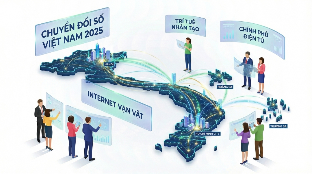 Chuyển đổi số trở thành trục xương sống của quản trị, kinh tế và đời sống xã hội trong kỷ nguyên mới. Dịch vụ công, quản lý doanh nghiệp và các hoạt động xã hội đều được số hóa, tăng minh bạch và hiệu quả. Tối ưu hóa bộ máy chính quyền, mở ra cơ hội thu hẹp khoảng cách phát triển giữa các vùng miền. Con người được đặt vào vị trí trung tâm, thúc đẩy tư duy vận hành mới, tạo tiền đề phát triển bền vững. Chuyển đổi số minh chứng cho năng lực thích ứng và đổi mới sáng tạo của Việt Nam trong kỷ nguyên vươn mình.