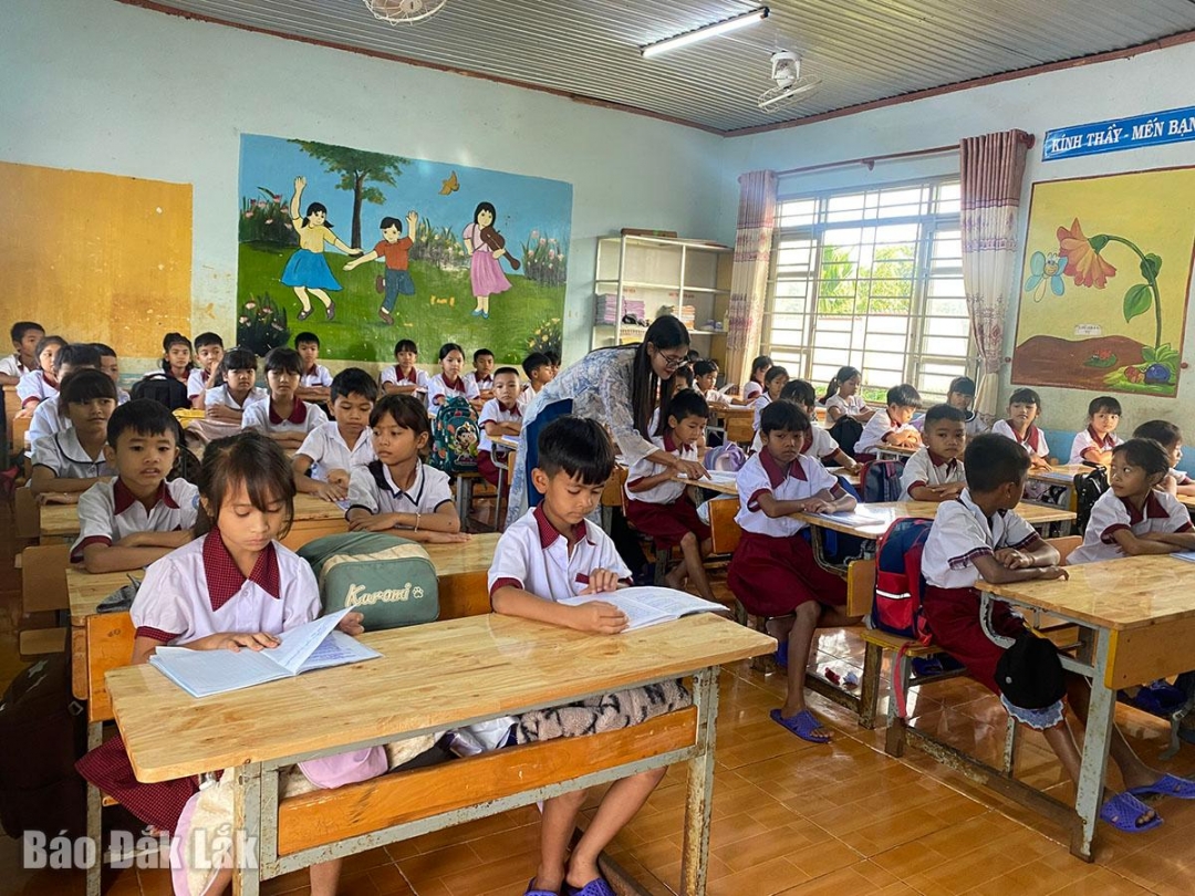 Đáng chú ý, nhiều năm nay, nhà trường phối hợp chặt chẽ với buôn trưởng, người có uy tín trong buôn để tuyên truyền vận động, khuyên nhủ các em chăm chỉ học tập. Trường hợp hai anh em Y Thin Êban, học sinh lớp 4C và Y Nghinh Êban, học sinh lớp 3C, ở buôn Kroa C là ví dụ điển hình. Bố mẹ làm thuê kiếm sống qua ngày, có những lúc tưởng như các em phải bỏ học giữa chừng vì gia cảnh khó khăn. Nắm bắt được hoàn cảnh các em nên các thầy, cô giáo luôn gần gũi, động viên các em cố gắng học tập; kết nối với các nhà hảo tâm hỗ trợ học bổng; đồng thời phối hợp với buôn trưởng buôn Kroa C là ông Y Ngoan Êban và người có uy tín trong buôn là ông Y Ui Adrơng kịp thời thăm hỏi, động viên các em đến trường, đến lớp. Sự quan tâm của thầy cô giáo, Ban tự quản buôn đã giúp anh em Y Thin vui vẻ, tự tin đến trường.