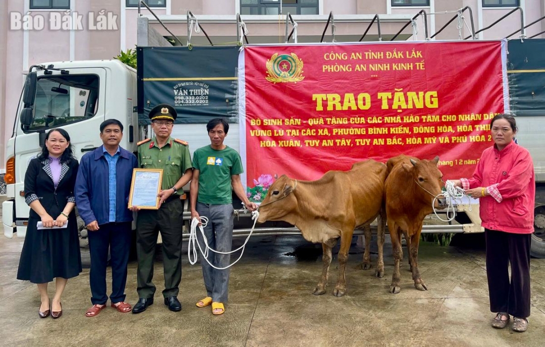 Ngày 24/12, Phòng An ninh kinh tế - Công an tỉnh tổ chức tặng 16 con bò sinh sản cho các hộ dân bị thiệt hại nặng do mưa lũ tại các xã Hòa Thịnh, Hòa Mỹ, Hòa Xuân, Tuy An Tây, Tuy An Bắc, Phú Hòa 2 và các phường Bình Kiến, Đông Hòa.
