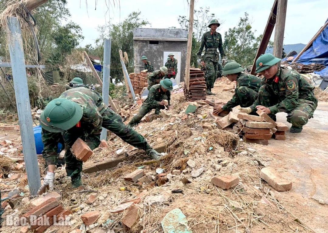 Mưa lũ đã qua, nắng đã lên nhưng cán bộ, chiến sĩ Bộ Chỉ huy Quân sự (CHQS) tỉnh Đắk Lắk vẫn ở lại vùng rốn lũ Hòa Thịnh, hết lòng hỗ trợ người dân và chính quyền địa phương với tinh thần “đi trước, về sau”.