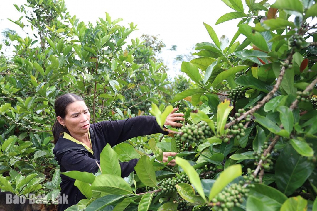 | Nhờ con gái làm việc ở Nhật Bản và gửi tiền về, bà Mai Thị Minh (vợ ông Hoàng Văn Đang) có vốn để cải tạo vườn cà phê, tăng thu nhập cho gia đình. |