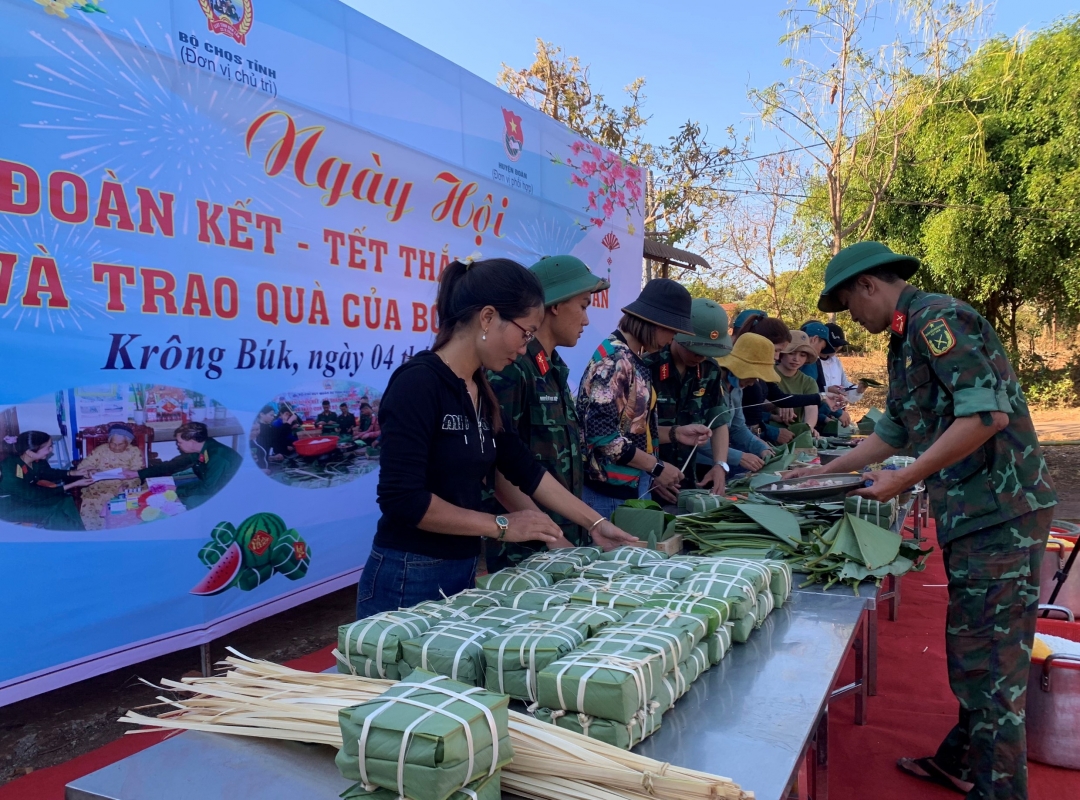 Tết đến, xuân về, ngoài các hoạt động truyền thống, quen thuộc như làm báo tường, báo ảnh, gói bánh chưng, bày mâm ngũ quả, múa lân sư rồng, kéo co, đẩy gậy, ném còn…, cán bộ, chiến sĩ Đoàn Mang Yang (Trung đoàn 95, Sư đoàn 2, Quân khu 5, đóng quân tại khu vực đèo Hà Lan (thị xã Buôn Hồ)) còn có một sân chơi khác rất hấp dẫn, đó là hội thi đắp linh vật do liên chi đoàn tổ chức.