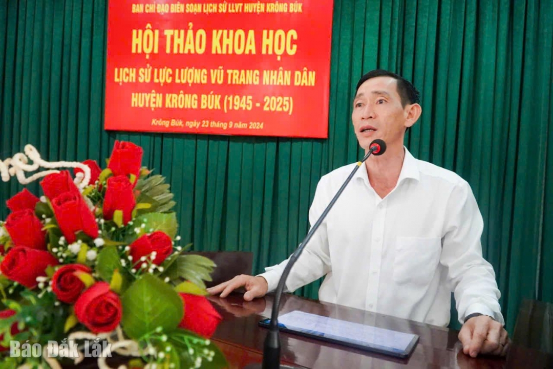 | Đại tá Nguyễn Văn Bôn, Phó Giám đốc, Thủ trưởng Cơ quan Cảnh sát điều tra Công an tỉnh khen thưởng đột xuất cho Công an huyện Cư Kuin. |