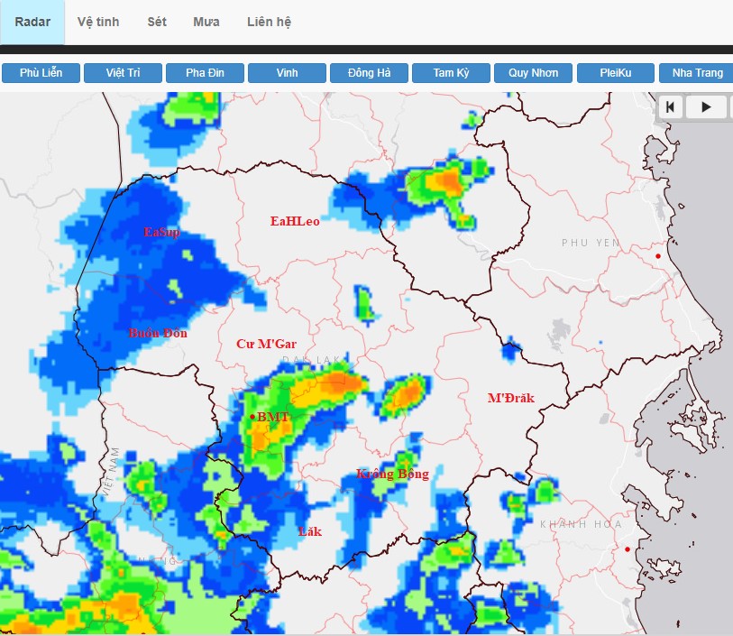 Hiện nay qua theo dõi trên ảnh Ra đa thời tiết, tồn tại những vùng mây dông trên khu vực các huyện Ea Kar, Lắk, Krông Bông, Krông Ana, TP. Buôn Ma Thuột, Cư M'gar, Krông Pắc, TX. Buôn Hồ, Cư Kuin, Krông Năng.