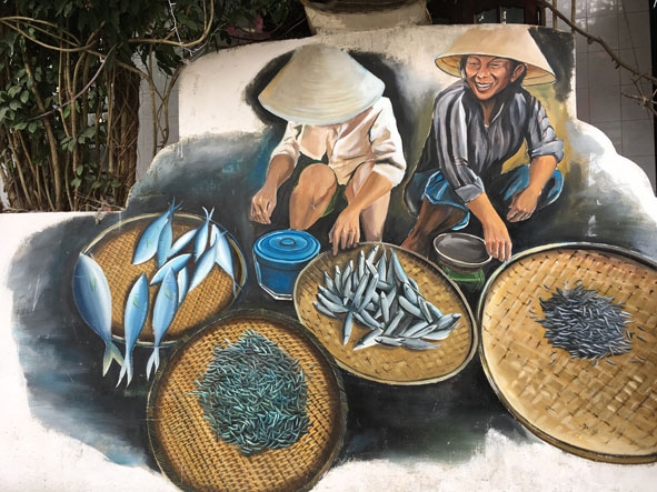 Lại có cả những bức tranh lưu lại kỷ niệm đáng nhớ của chính chủ nhân có bức tường được vẽ, đó là bức họa vẽ người phụ nữ đang giặt giũ bên giếng nước; một bà mẹ với gánh cá trĩu trịt dưới bến thuyền lên; một tiệm cắt tóc nho nhỏ được điểm xuyến bằng sắc màu tươi sáng của những bông hoa giấy hay một em bé đang đùa nghịch với chú cún đáng yêu...