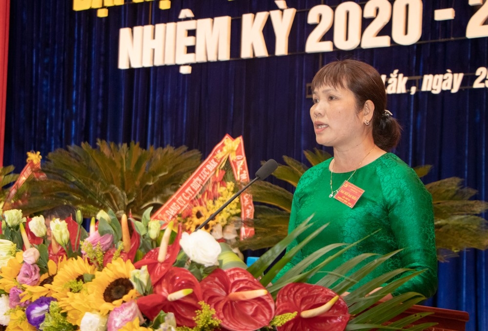 | Bí thư Đảng ủy Khối các cơ quan và doanh nghiệp tỉnh Đoàn Thị Biên phát biểu khai mạc đại hội. Ảnh: Hoàng Gia |