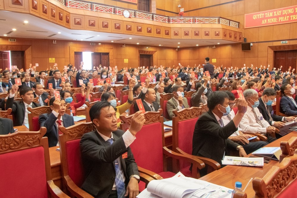 | Đại biểu biểu quyết thông qua Nghị quyết Đại hội. Ảnh: Hoàng Gia |