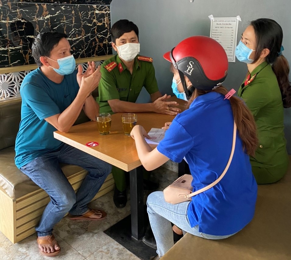 Trưa nắng, trong căn nhà bạt dã chiến đặt tại đầu con hẻm, Thượng úy Lê Đức Tiến, Công an khu vực tổ dân phố 10 (phường Tân Thành) và các chiến sĩ dân quân, bảo vệ dân phố vẫn miệt mài làm việc, lưng áo đẫm mồ hôi. Anh Tiến chia sẻ: “Ngoài nhiệm vụ kiểm soát chặt chẽ khu phong tỏa, đều đặn mỗi ngày hai lần, chúng tôi sẽ tiến hành quét dọn vệ sinh, xử lý rác thải, phun khử khuẩn toàn bộ con hẻm. Người dân cần mua sắm, hỗ trợ gì, chúng tôi đều tận tình giúp đỡ. Thường xuyên tiếp xúc với hóa chất, dung dịch khử khuẩn dưới thời tiết nắng nóng nên mọi người đều thấm mệt, cổ họng đắng ngắt, ăn uống chẳng biết ngon là gì, song vì sự bình yên, an toàn của người dân, chúng tôi luôn động viên nhau cùng cố gắng”. Sự vất vả, nỗ lực của các cán bộ, chiến sĩ khiến người dân trong khu vực rất cảm kích. Anh Vũ Hồng Anh, một người dân sinh sống trong con hẻm bị phong tỏa bày tỏ: “Mỗi lần nhìn ra ngoài trời nắng, hay giữa đêm khuya tỉnh giấc vẫn thấy mấy anh, mấy chú công an, dân quân, bảo vệ dân phố đi tuần, phun khử khuẩn, chúng tôi rất xúc động. Bà con ngày nào cũng nhắn tin, gọi điện nhắc nhau tự giác chấp hành tốt các quy định phòng chống dịch để tình hình trở lại bình thường, các anh sớm được về nhà”.