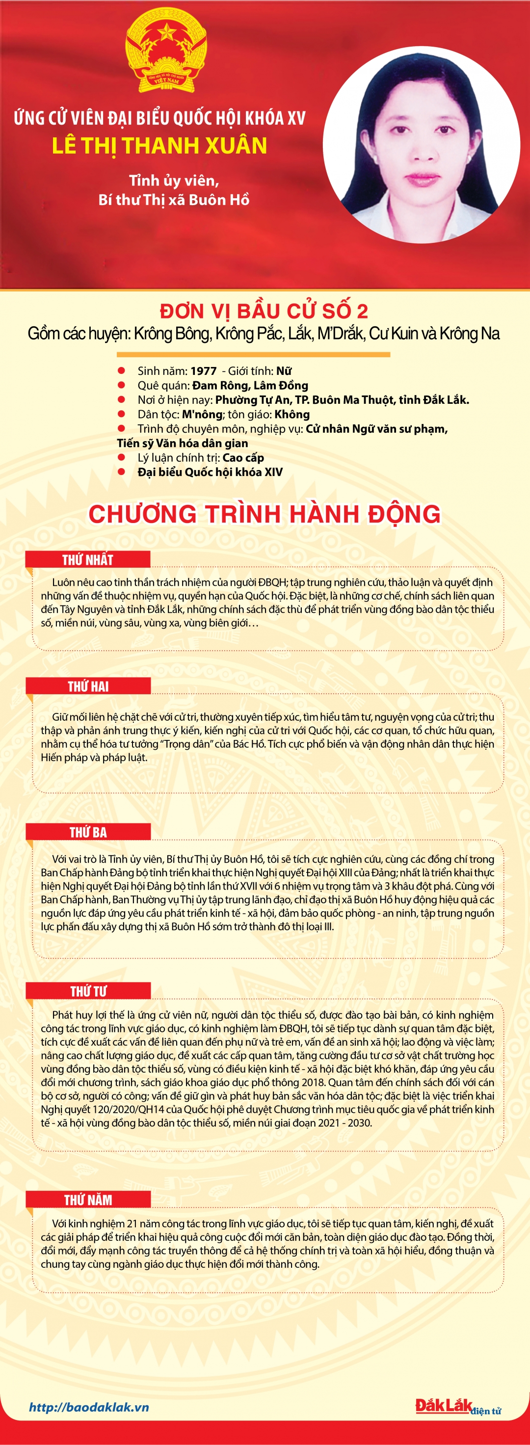 Chương trình hành động của ứng cử viên đại biểu Quốc hội khóa XV tại Đắk Lắk Nguyễn Thị Thu Nguyệt
