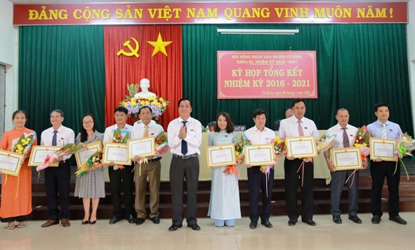 | UBND huyện Cư Kuin khen thưởng các tập thể có thành tích xuất sắc trong hoạt động của HĐND huyện, nhiệm kỳ 2016 - 2021. |