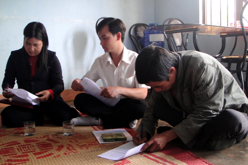 | Anh Lê Trung Tuyến đang ký nhận vốn vay |