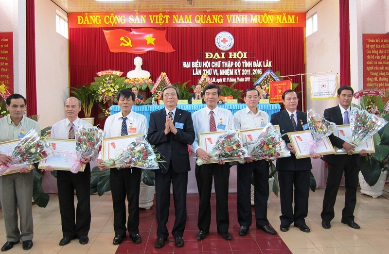 | Tại Đại hội, Trung ương Hội Chữ thập đỏ trao Kỷ niệm chương Vì sự nghiệp Chữ thập đỏ Việt Nam tặng 17 cá nhân, gồm các ông: Niê Thuật, Ủy viên BCH Trung ương Đảng, Bí thư Tỉnh ủy, Chủ tịch HĐND tỉnh; Hoàng Trọng Hải, Phó Bí thư Thường trực Tỉnh ủy; Lữ Ngọc Cư, Phó Bí thư Tỉnh ủy, Chủ tịch UBND tỉnh; Y Dhăm Ênuôl, Ủy viên Ban Thường vụ Tỉnh ủy, Phó Chủ tịch Thường trực UBND tỉnh; Lê Xuân Hảo, Ủy viên Ban Thường vụ Tỉnh ủy, Trưởng ban Tuyên giáo Tỉnh ủy; Y Dek H’Đơk, Ủy viên Ban Thường vụ Tỉnh ủy, Chủ tịch Ủy ban MTTQ Việt Nam tỉnh; Đỗ Thanh Xuân, Ủy viên Ban Thường vụ Tỉnh ủy, Trưởng ban Dân vận Tỉnh ủy; Nguyễn Thanh Nam, Giám đốc Sở Tài chính; Dương Trí, Giám đốc Kho bạc Nhà nước tỉnh; Hồ Xuân Phước, Phó Giám đốc Sở Tài chính; Nguyễn Doãn Việt, Phó Giám đốc Sở Nội vụ; Nay Nguyên, Phó Giám đốc Sở Y tế; Y Nhuần Byă, Phó Chủ tịch Hội Liên hiệp thanh niên tỉnh; Vũ Văn Tùng, Trưởng phòng Văn hóa xã hội - UBND tỉnh; Nguyễn Xuân Tuế, Giám đốc Bệnh viện Y học cổ truyền; Đinh Xuân Diệu, Trưởng phòng Tài chính - hành chính sự nghiệp - Sở Tài chính; Phan Trọng Nhơn, Trưởng khoa Ngoại - Bệnh viện Đa khoa Thiện Hạnh. |