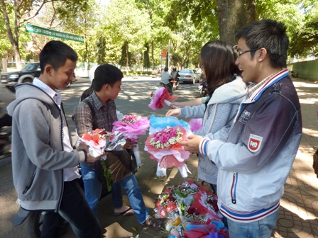Bên cạnh sự sôi động của các mặt hàng quà tặng thì Valentine cũng là dịp lên ngôi của thị trường hoa tươi. Tại các cửa hàng, shop hoa tươi trên đường Quang Trung, Nơ Trang Lơng, lượng hoa đã về nhiều gấp 2-3 lần so với ngày thường, chủ yếu là các loại hoa hồng. Theo đó, hoa tươi cũng tăng 50% so với ngày thường, cụ thể: hoa hồng địa phương có giá 8.000 đồng/bông, hồng Đà Lạt từ 12.000 đến 15.000 đồng/bông; một lẵng hoa trung bình có giá từ 200.000 đồng. Nhiều chủ cửa hàng bán hoa dự báo, ngày 14-2 giá hoa sẽ còn tăng nữa.
