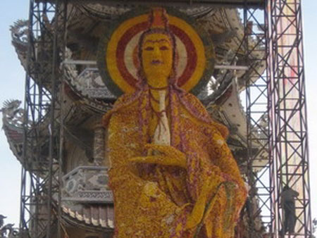 9. Tượng Phật Quan Thế Âm bằng hoa lớn nhất: Trong những ngày đầu năm 2010 các nghệ nhân hoa Đà Lạt cùng 500 Phật tử chùa Linh Phước (Thành phố Đà Lạt) đã thực hiện tượng Phật cao 15,5m, nặng 3 tấn, kết từ 500 nghìn bông hoa bất tử.