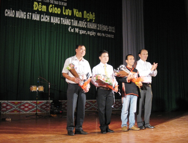 Tối 1-9, tại Trung tâm Văn hoá – Thể thao huyện Cư M’gar, Hội Văn học -Nghệ thuật phối hợp Đoàn Ca Múa Nhạc dân tộc Dak Lak, Ban Tuyên giáo Huyện uỷ, Trung tâm Văn hoá – Thể thao huyện Cư M’gar tổ chức giao lưu văn nghệ chào mừng 67 năm Cách mạng Tháng Tám và Quốc khánh 2-9 (1945 – 2012). Đông đảo đại biểu, khán giả đã đến tham dự, cổ vũ.