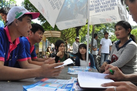 | Lực lượng thanh niên tình nguyện của Trường Trung cấp Dak Lak đang ghi nhận thông tin của thí sinh để tư vấn, tạo điều kiện tốt nhất cho thí sinh |