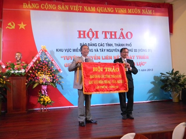 Tại hội thảo, Ban tổ chức đã trao cờ luân lưu cho Báo Thừa Thiên - Huế là đơn vị đăng cai Hội thảo báo Đảng các tỉnh, thành phố khu vực miền Trung và Tây Nguyên lần 4 (vòng IV) năm 2014; đồng thời đại diện các báo ký cam kết liên kết tuyên truyền phát triển các vùng kinh tế động lực.