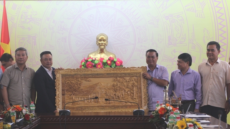 | Bí thư Tỉnh ủy Êban Y Phu trao tặng quà lưu niệm cho Tập đoàn Dầu khí Việt Nam |