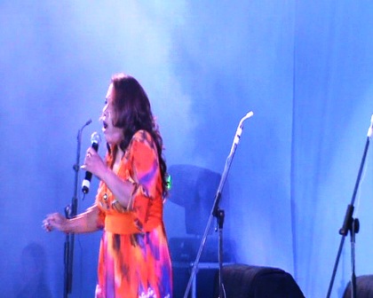 | Nghệ sĩ Y Moan cùng hòa giọng với khán giả và các nghệ nhân. |