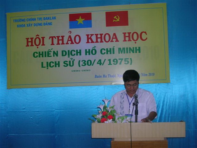 Nhân dịp kỷ niệm 35 năm Ngày giải phóng phóng hoàn toàn miền Nam thống nhất đất nước, sáng nay (28-4), Trường Chính trị tỉnh đã tổ chức Hội thảo khoa học cấp khoa (do Khoa Xây dựng Đảng chủ trì) với chủ đề “Chiến dịch Hồ Chí Minh lịch sử”. Hội thảo có sự tham gia của nhiều giảng viên ở các khoa, phòng chuyên môn trong trường.
