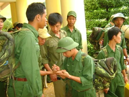 | Các quân nhân cho nhau địa chỉ trước khi chia tay trở về địa phương |