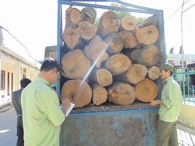 Lập biên bản tạm giữ lâm sản vận chuyển trái phép. |