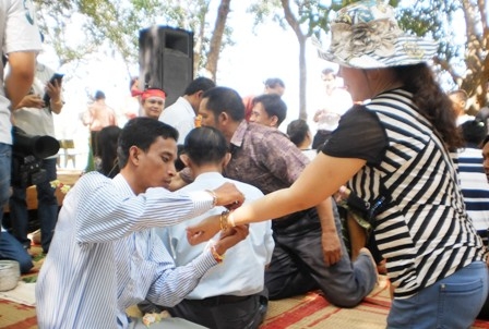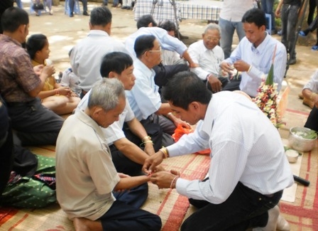 | Những người Việt gốc Lào thực hiện nghi thức hành lễ đầu năm mới |
