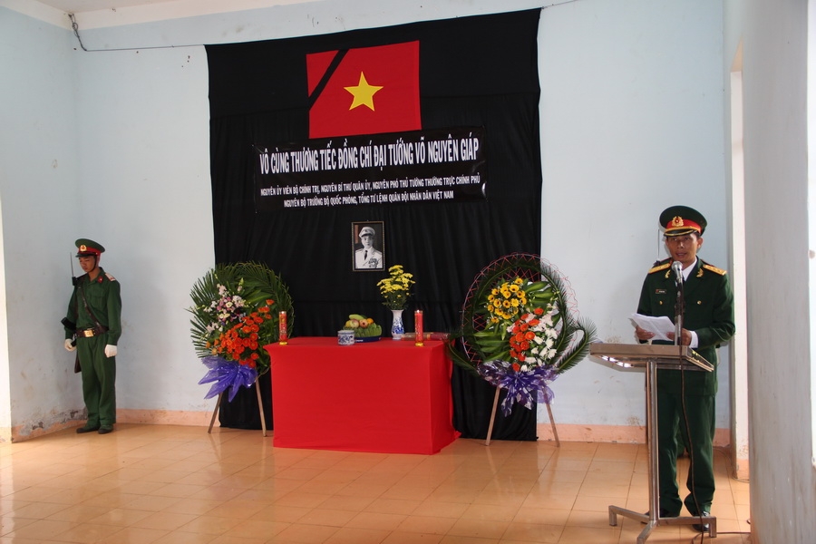 Trang nghiêm và kính cẩn, cán bộ chiến sĩ và nhân dân đã ôn lại tiểu sử, những chiến công in dấu Đại tướng Võ Nguyên Giáp. Suốt cuộc đời hoạt động cách mạng trên 80 năm, Đại tướng đã có nhiều công lao to lớn đối với sự nghiệp cách mạng của Đảng và dân tộc. Là người học trò xuất sắc và gần gũi của Chủ tịch Hồ Chí Minh, là Đại tướng đầu tiên và Tổng tư lệnh Quân đội Nhân dân Việt Nam. Đại tướng được nhân dân yêu mến, kính trọng, bạn bè quốc tế ngưỡng mộ, là niềm tự hào của các thế hệ cán bộ, chiến sĩ toàn quân. Đại tướng được Đảng và Nhà nước tặng thưởng Huân chương Sao vàng, Huân chương Hồ Chí Minh, Huy hiệu 70 năm tuổi Đảng và nhiều huân huy chương cao quý khác của Việt Nam.