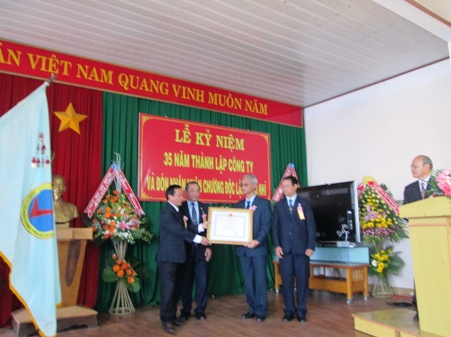 | Thừa uỷ quyền của Chủ tịch nước, Phó Chủ tịch UBND tỉnh Đinh Văn Khiết trao Huân chương lao động hạng Nhì cho Công ty cổ phần công trình Việt Nguyên |