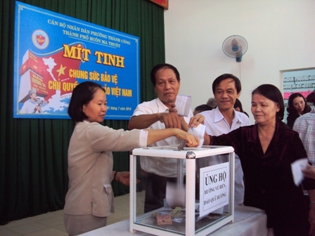 | Nhân dân phường Thành Công đóng góp ủng hộ các chiến sĩ hải quân đang bảo vệ biển đảo. |