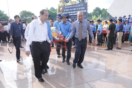 | Đoàn đại biểu UBND tỉnh dâng vòng hoa viếng các Anh hùng liệt sỹ. |