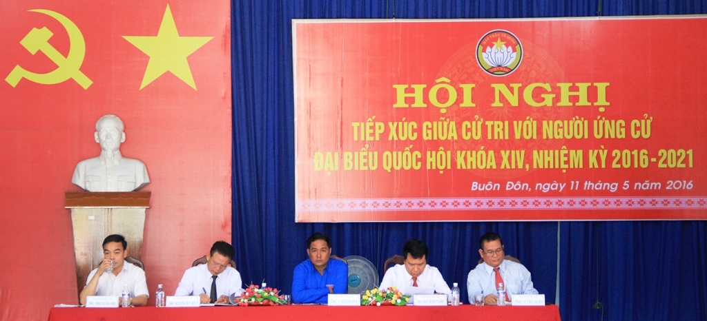 Ngày 11-5, các ứng cử viên đại biểu Quốc hội khóa XIV thuộc đơn vị Bầu cử số 1 (gồm các huyện: huyện Ea Súp, Buôn Đôn, Cư M’gar và TP. Buôn Ma Thuột) đã có buổi tiếp xúc với đại diện cử tri các xã, thị trấn, cơ quan, đơn vị, trường học trên địa bàn huyện Buôn Đôn để vận động bầu cử.