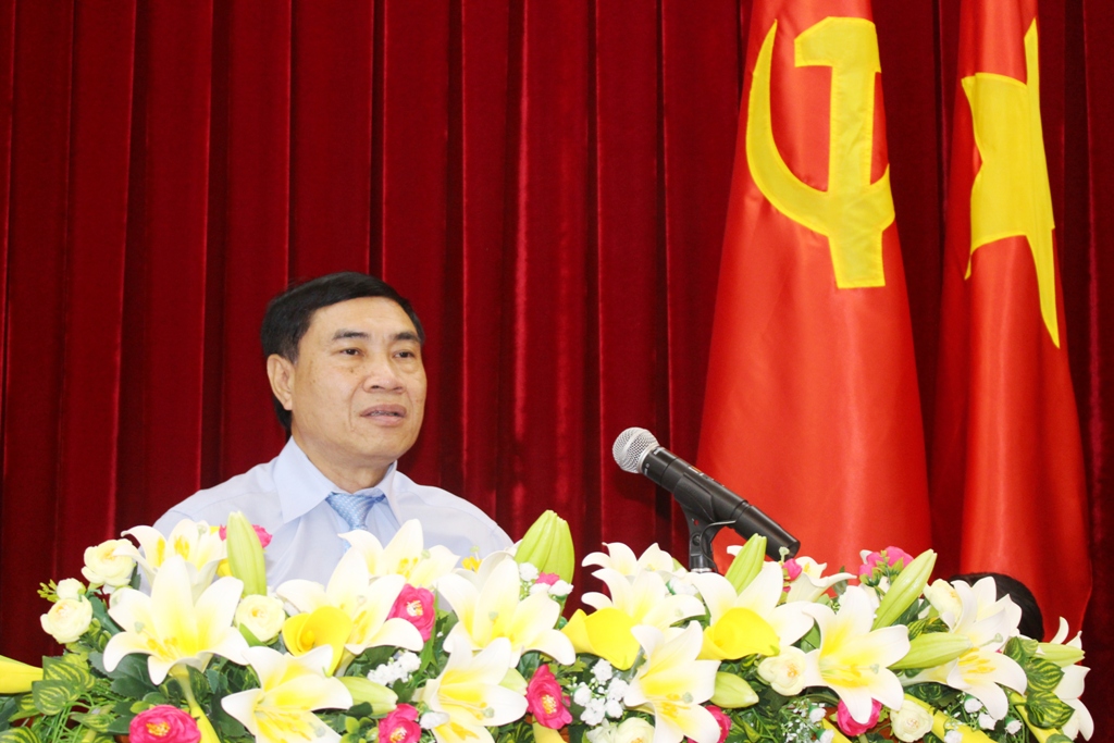 | Ủy viên Trung ương Đảng, Phó Bí thư Tỉnh ủy Trần Quốc Cường phát biểu tại buổi gặp mặt |