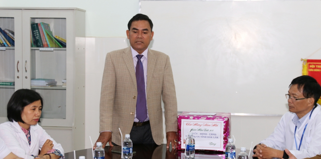 Phó Bí thư Tỉnh ủy, Chủ tịch HĐND tỉnh, Trưởng Đoàn đại biểu Quốc hội tỉnh Y Biêr Niê chúc Tết tập thể cán bộ, y - bác sĩ Bệnh viện Đa khoa tỉnh. |
