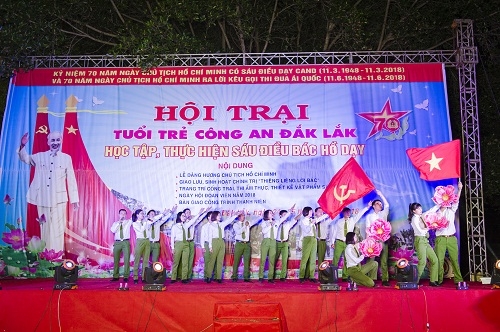 Trong 2 ngày 24 và 25-3, Đoàn thanh niên Công an tỉnh đã tổ chức Hội trại “Tuổi trẻ Công an Đắk Lắk học tập, thực hiện sáu điều Bác Hồ dạy” nhân kỷ niệm 70 năm Ngày Chủ tịch Hồ Chí Minh có sáu điều dạy Công an nhân dân (11-3-1948 – 11-3-2018) và hướng tới kỷ niệm 70 năm Ngày Chủ tịch Hồ Chí Minh ra Lời kêu gọi thi đua ái quốc (11-6-1948 – 11-6-2018).