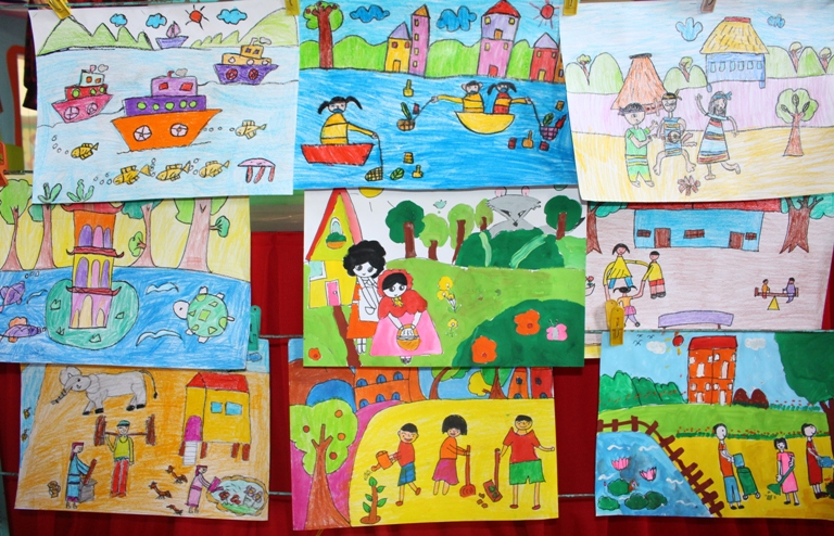 | Một số tác phẩm hội họa của các cháu tham gia hội thi. |