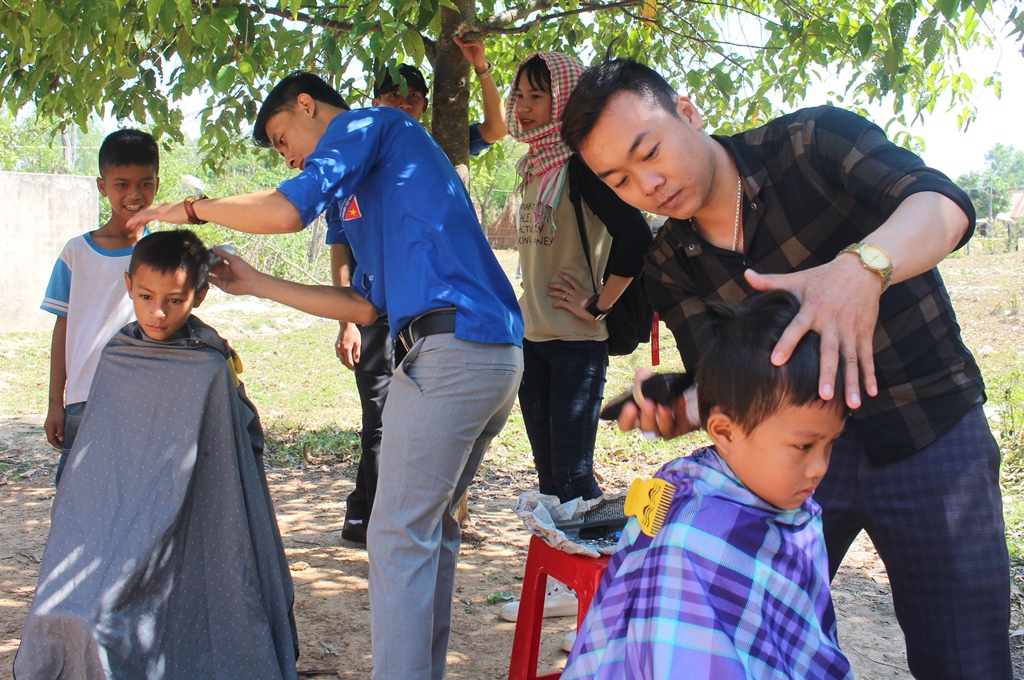 | Các tình nguyện viên cắt tóc cho thiếu nhi |