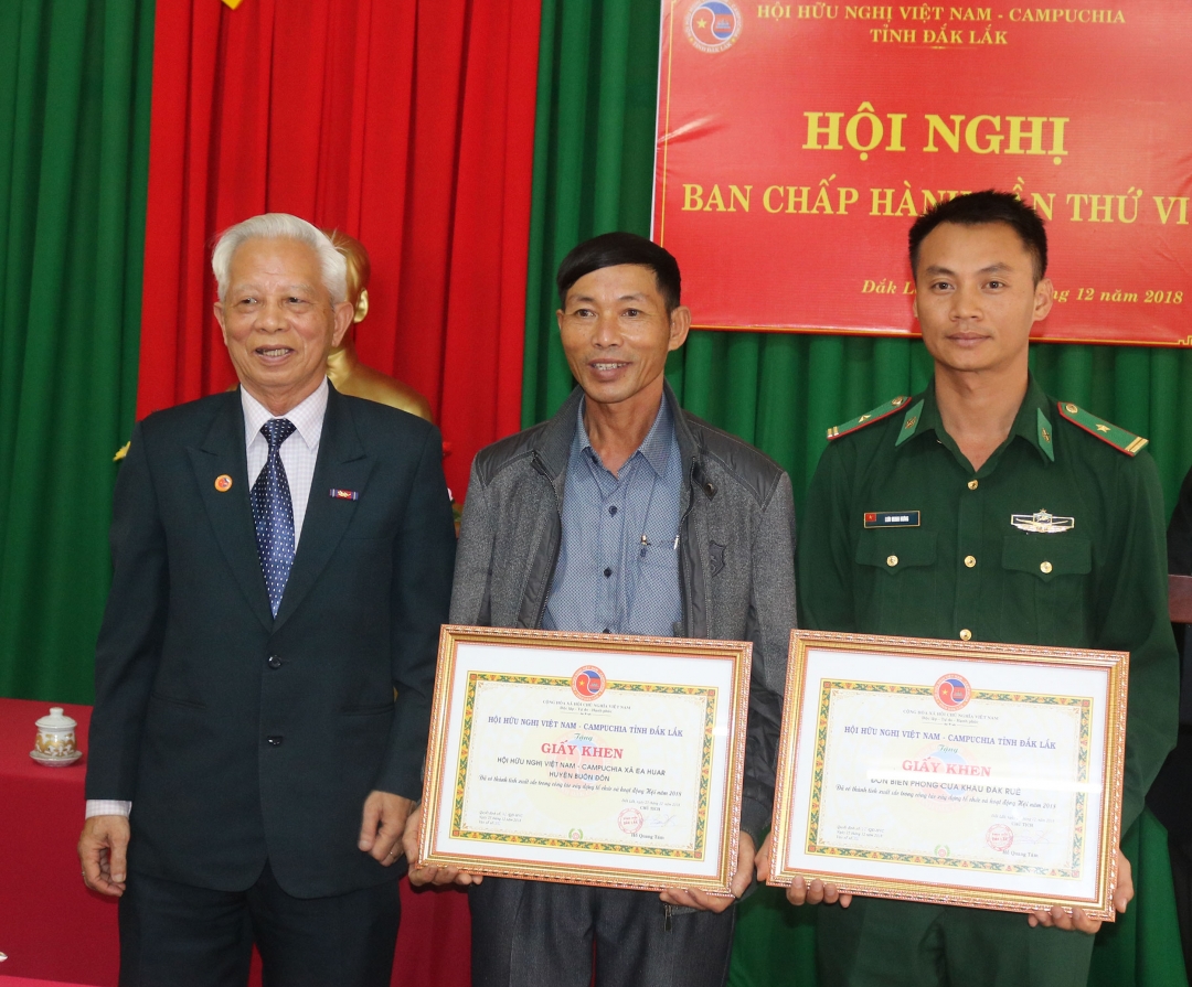 | Phó Chủ tịch UBND tỉnh H’Yim Kđoh trao Bằng khen của UBND tỉnh tặng các cá nhân có thành tích xuất sắc. |