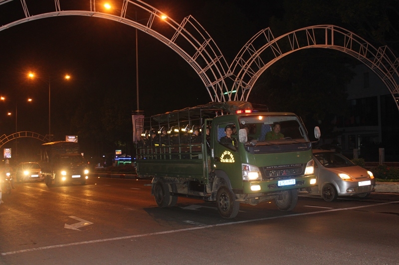 | Ca tuần tra đầu tiên của đoàn cơ sở Phòng Cảnh sát cơ động (Công an tỉnh) trên tuyến đường Nguyễn Tất Thành (TP. Buôn Ma Thuột). |