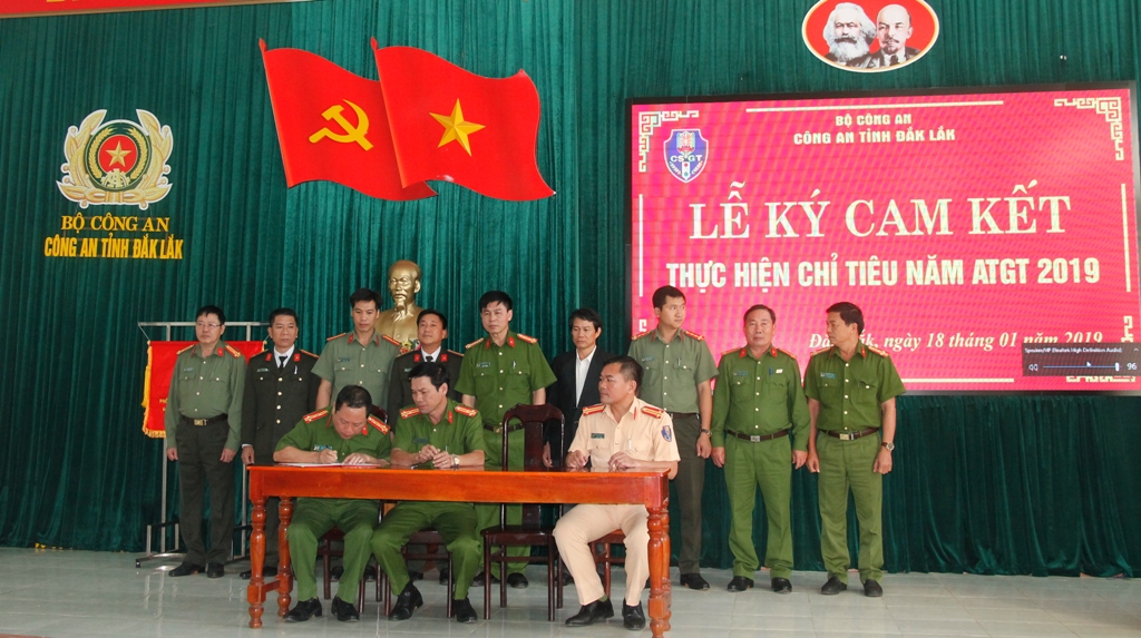 Tại hội nghị, Công an tỉnh đã tổ chức Lễ ký cam kết thực hiện chỉ tiêu Năm ATGT 2019, với các nội dung cơ bản: giảm TNGT từ 5% trở lên đối với 3 tiêu chí về số vụ, số người chết và số người bị thương so với năm 2018; tăng cường phát hiện, xử lý các nhóm hành vi vi phạm là nguyên nhân dẫn đến TNGT và gây bức xúc trong xã hội như: nồng độ cồn, tốc độ, chuyển hướng trái quy định...
