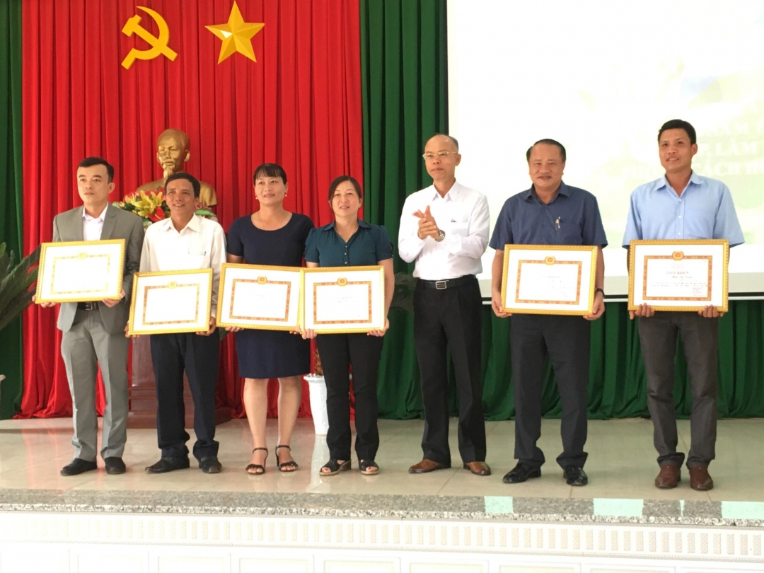 | Các hộ nghèo ở xã Hòa Xuân nhận quà tặng. |