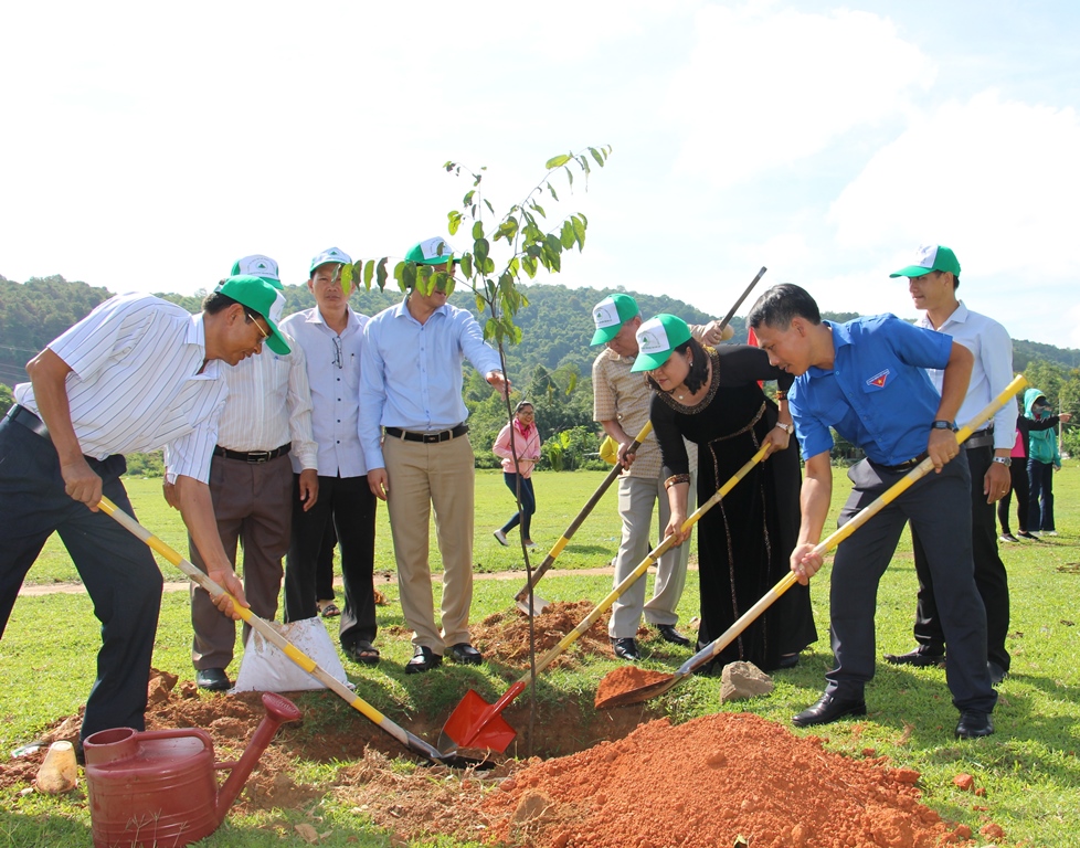 | Các đại biểu tham gia trồng cây tại thị trấn Liên Sơn |