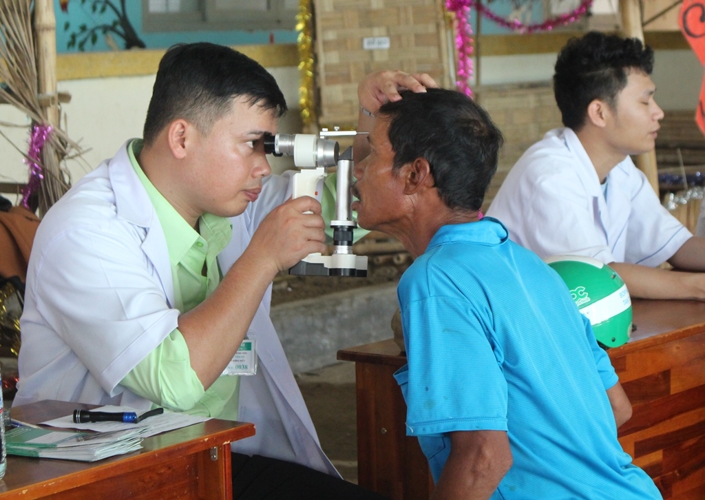 | Các y, bác sĩ khám mắt miễn phí cho người dân xã Bông Krang |